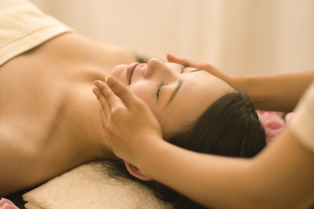 足のむくみケアの後、肩からうえのマッサージをさせてもらいます。あおむけや座ったままでの施術になります。